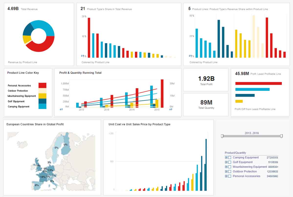 - داشبورد تحلیلی: داشبورد تحلیلی شامل مقادیر زیادی از دادهها و اطلاعات مرتبط با عملکرد سازمان است. این داشبورد توسط تحلیلگران ایجاد میشود و معمولاً بهصورت تخصصی برای شناخت عمیقتر روندها و رفتارهای سازمان استفاده میشود. از این نوع داشبورد برای ارتقاء تصمیمگیریهای استراتژیک استفاده میشود.